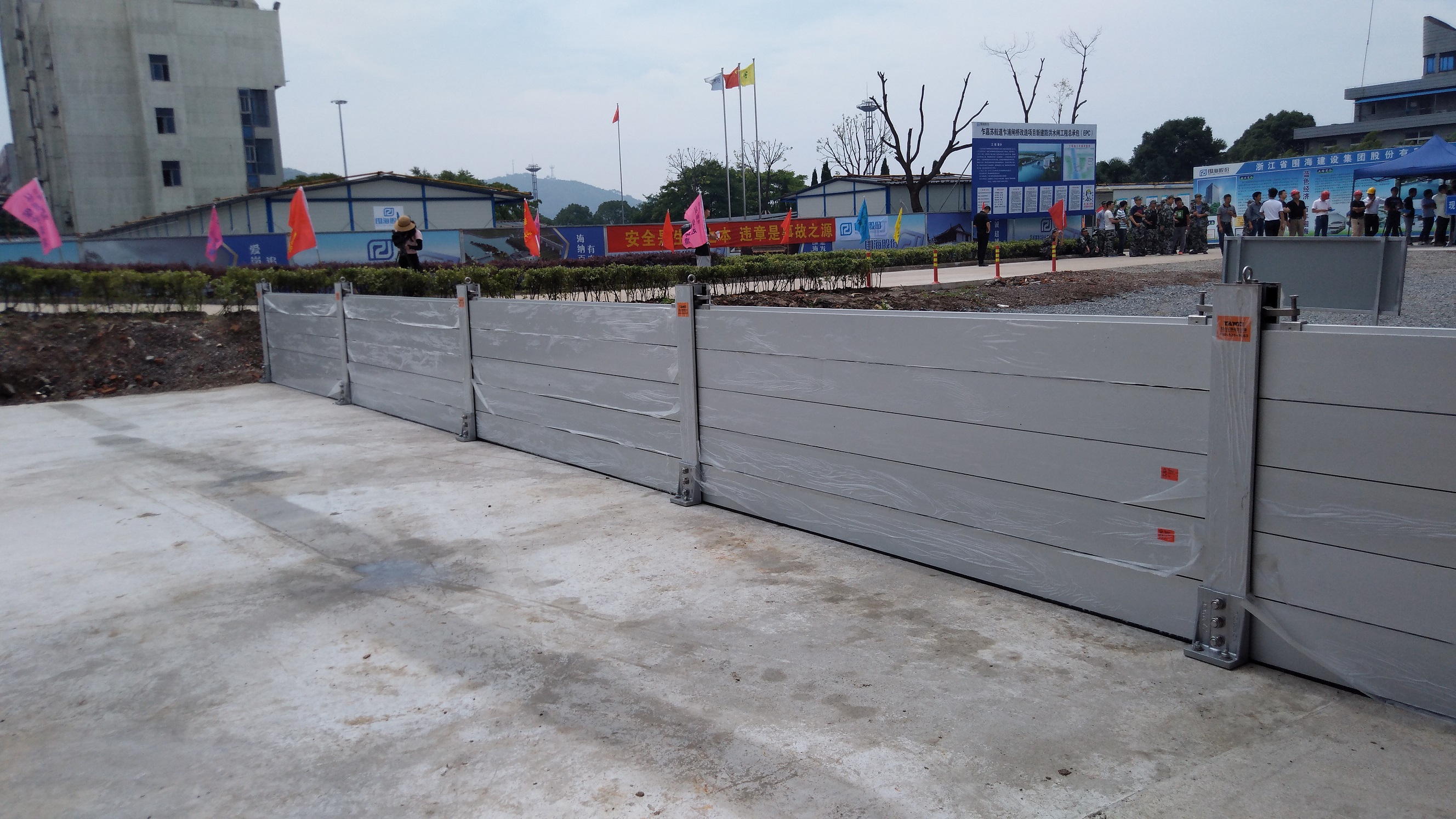 本公司生產的組合式移動防洪墻參加了嘉興港區2017年度防汛搶險演練,現場演示了防洪墻的安裝和拆卸過程,受到了到場的領導和嘉賓的一致肯定。